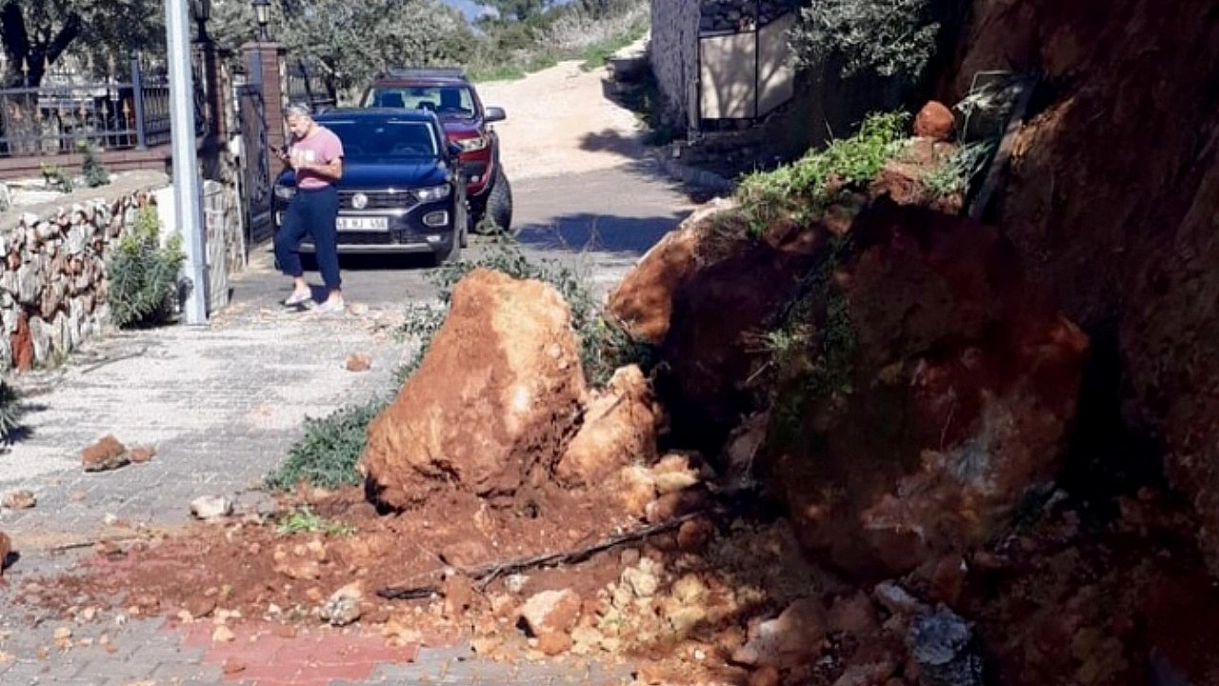 Fethiye'de yağış sonrası yollara düşen kaya ve topraklar için ekipler sahada