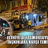 Muğla Büyükşehir Belediyesi MUSKİ ekipleri yağışların su baskınlarına neden olmaması için Fethiye'de yağmursuyu ızgaralarını temizliyor.