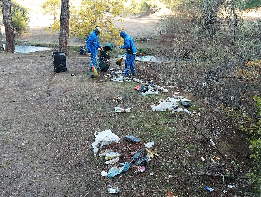 Fethiye'nin Çırpı Mevkii'ndeki mesire alanı, çöplerle gündem oldu. Fethiye Belediyesi Temizlik İşleri Müdürlüğü ekipleri, bölgedeki temizlik çalışmalarını tamamladı ve vatandaşlardan çevreye duyarlı olmalarını istedi.