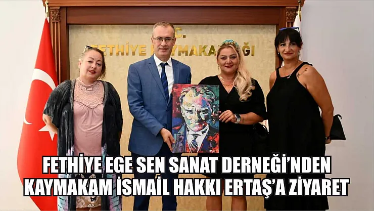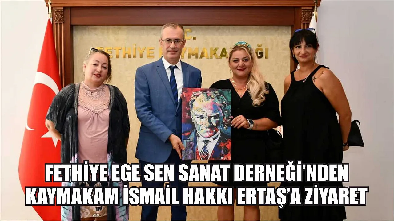 Fethiye EGE SEN Sanat Derneği Başkanı Selin Köktener ve yönetim kurulu üyeleri, Fethiye Kaymakamı İsmail Hakkı Ertaş'ı ziyaret etti. Sohbet havasında geçen ziyarette Kaymakam Ertaş, kadınların sanatsal ve kültürel faaliyetler konusunda daha aktif olmalarını desteklediklerini belirtti.