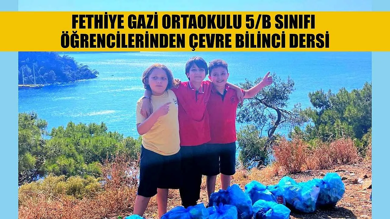 Muğla'nın Fethiye ilçesinde Gazi Orta Okulu 5/B sınıfı öğrencileri çevre bilinci konusunda yetişkinlere örnek olacak bir projeye imza attı. Öğrenciler, proje ödevleri kapsamında gerçekleştirdikleri çevre temizliği etkinliğiyle takdir topladı.
