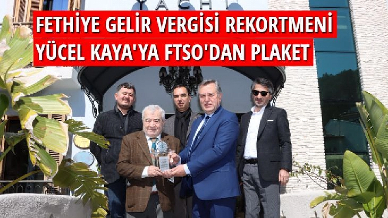 Fethiye Ticaret ve Sanayi Odası (FTSO) Yönetim Kurulu Başkanı Osman Çıralı, Yönetim Kurulu üyeleri Fatih Tufan, Ramazan Dim ve Şevket Süreyya Gürol, Fethiye Gelir Vergisi rekortmenleri sıralamasında 2. sırada yer alan Yücel Kaya'yı ziyaret ederek, teşekkür plaketi takdim etti.