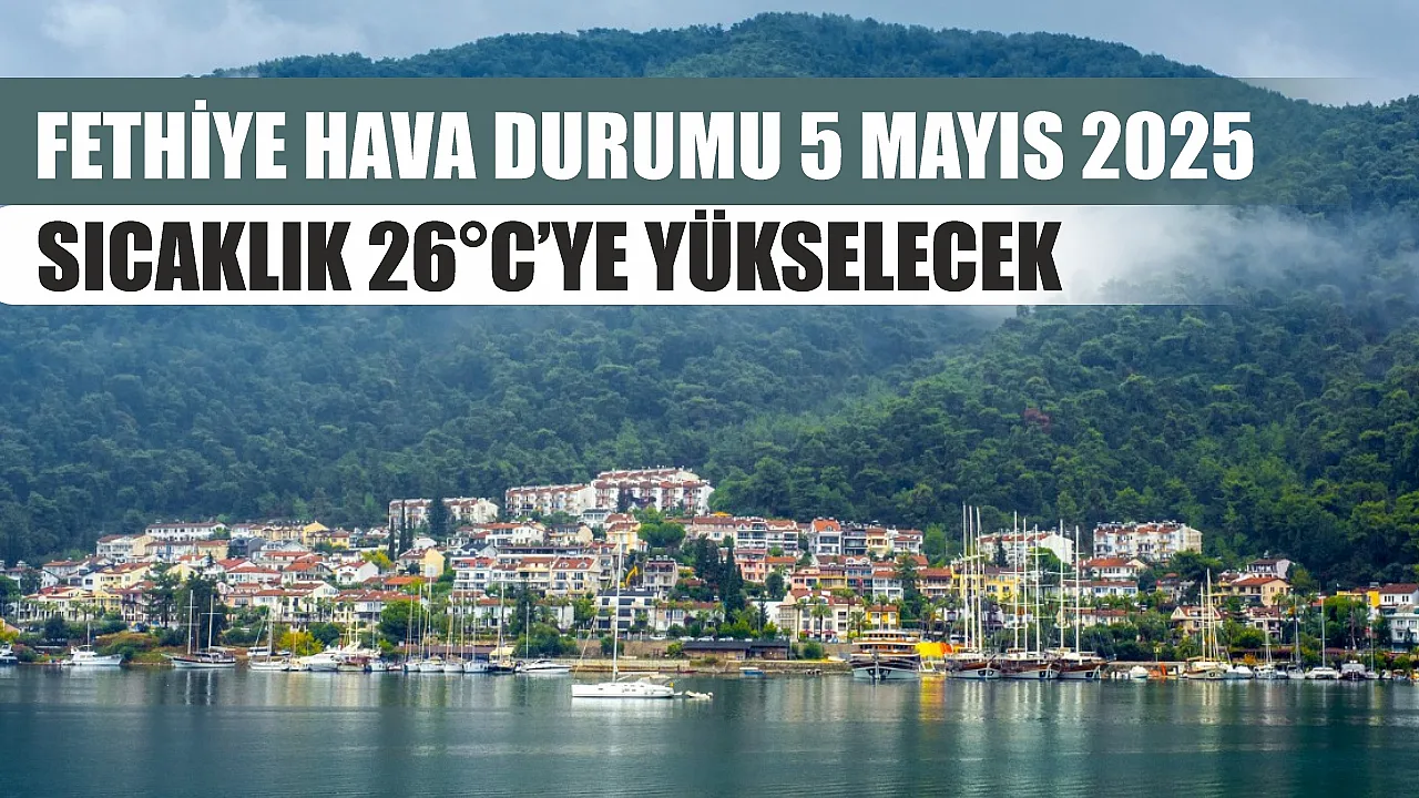 Meteoroloji Genel Müdürlüğü'nün 5 Mayıs 2025 hava tahminine göre Fethiye'de yağmur beklenmiyor. İlçede hava parçalı ve çok bulutlu geçecek gün içinde sıcaklık 15 ila 26 derece arasında olacak. Rüzgar kuzey yönünden saatte 10 km hızla esecek, nem oranı ise yüzde 42 ile 81 arasında değişecek.