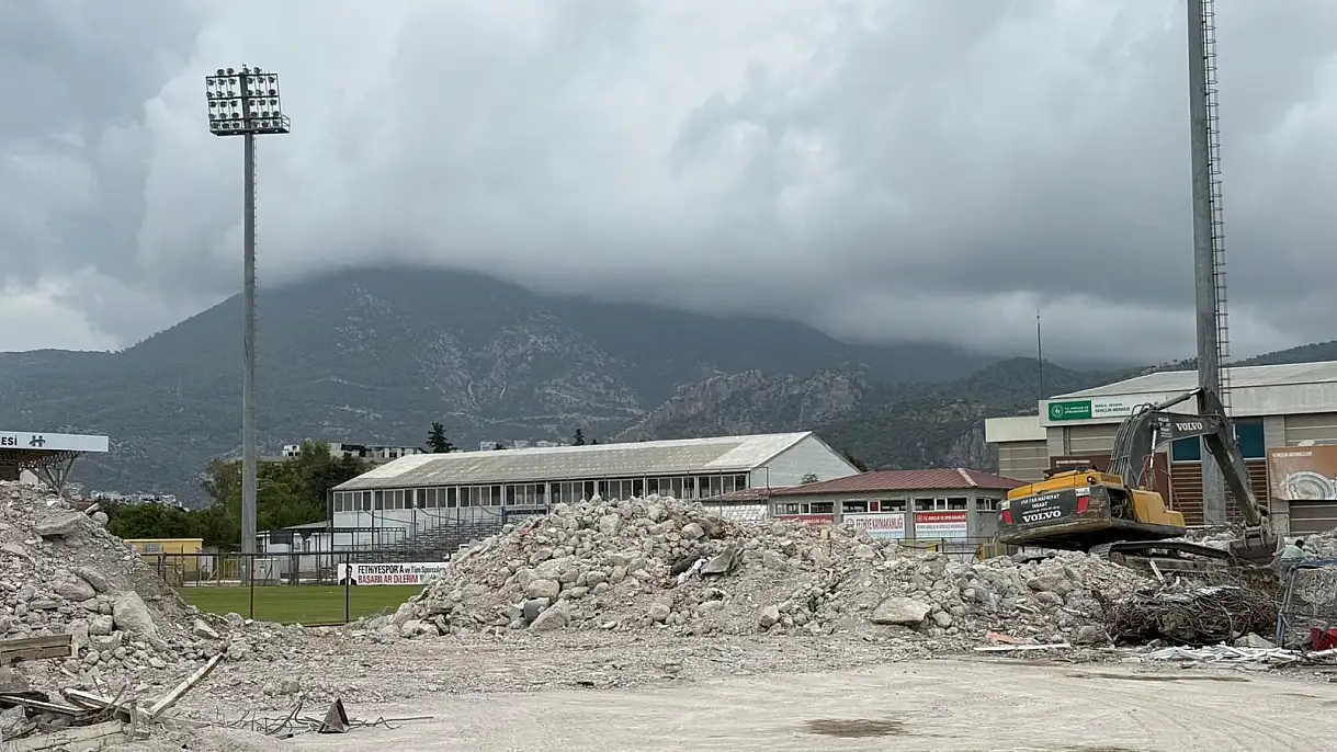 Fethiye İlçe Stadyumu'nda betonarme tribünün yıkım işlemi tamamlandı