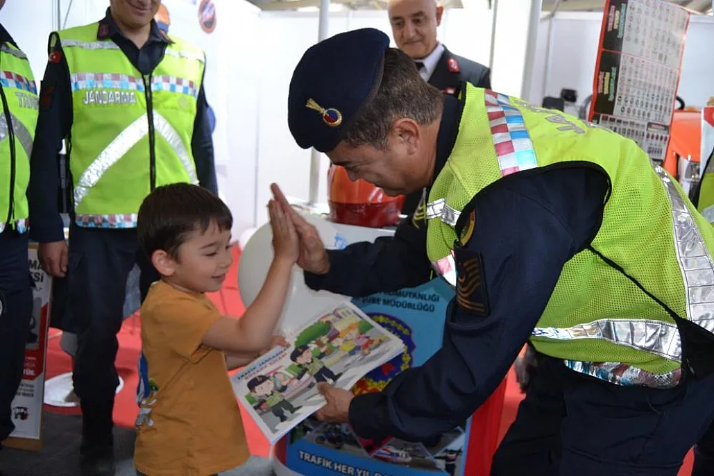 Fethiye'de kurulan tarım ve turizm fuarında jandarma ekipleri vatandaşları trafik güvenliği konusunda bilgilendirdi.