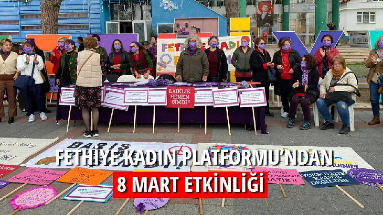 Fethiye Özer Olgun Kültür Merkezi Önünde toplanan Fethiye Kadın Platformu, 8 Mart Dünya Kadınlar Günü sebebiyle etkinlik düzenledi. Düzenlenen etkinlikte, öldürülen kadınların temsili kıyafetleri asıldı. Dövizler ve pankartlarla eşit ve özgür bir gelecek isteyen kadınlar müzikler eşliğinde hem dans etti hem de sık sık sloganlarla İstanbul Sözleşmesi’nin önemine dair vurgular yaptı.