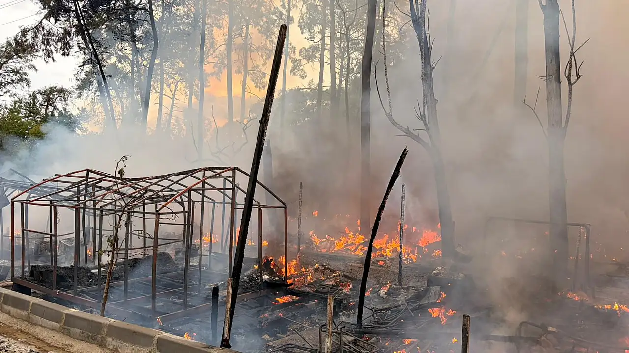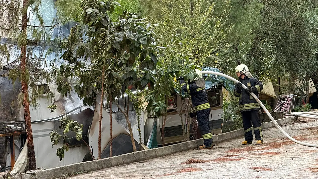 Fethiye’nin Yanıklar Mahallesi’nde bulunan Katrancı Koyu Tabiat Parkı’nda bir karavanda başlayan yangın, çevredeki ormanlık alana sıçradı.