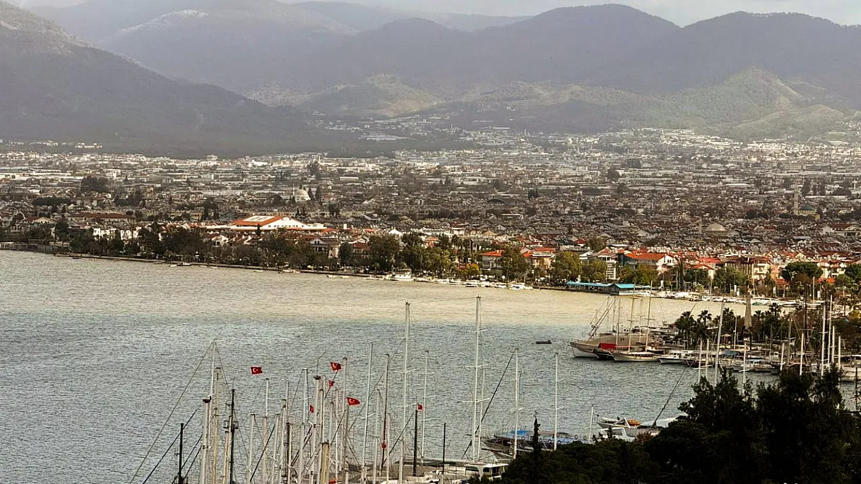 Muğla'nın Fethiye ilçesinde etkili olan sağanak nedeniyle dağlardan akan çamurlu su, Fethiye Körfezinin renginin değişmesine yol açtı.