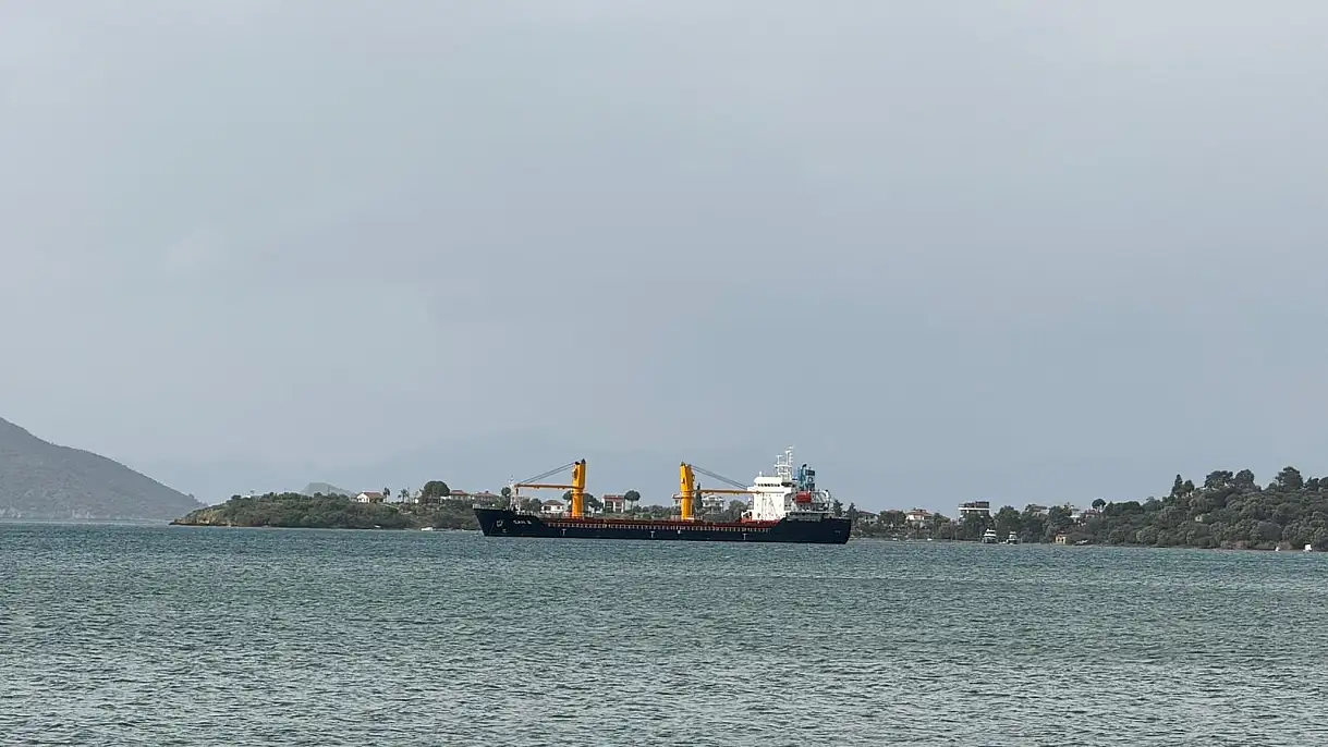 Fethiye Körfezi'nde ticari yük gemisi 'CAN S''in demirlediği görüldü. Gemi, iri gövdesi ve yüksek yapısıyla hem denizden hem de kıyıdan bakıldığında büyüklüğüyle dikkat çekti.