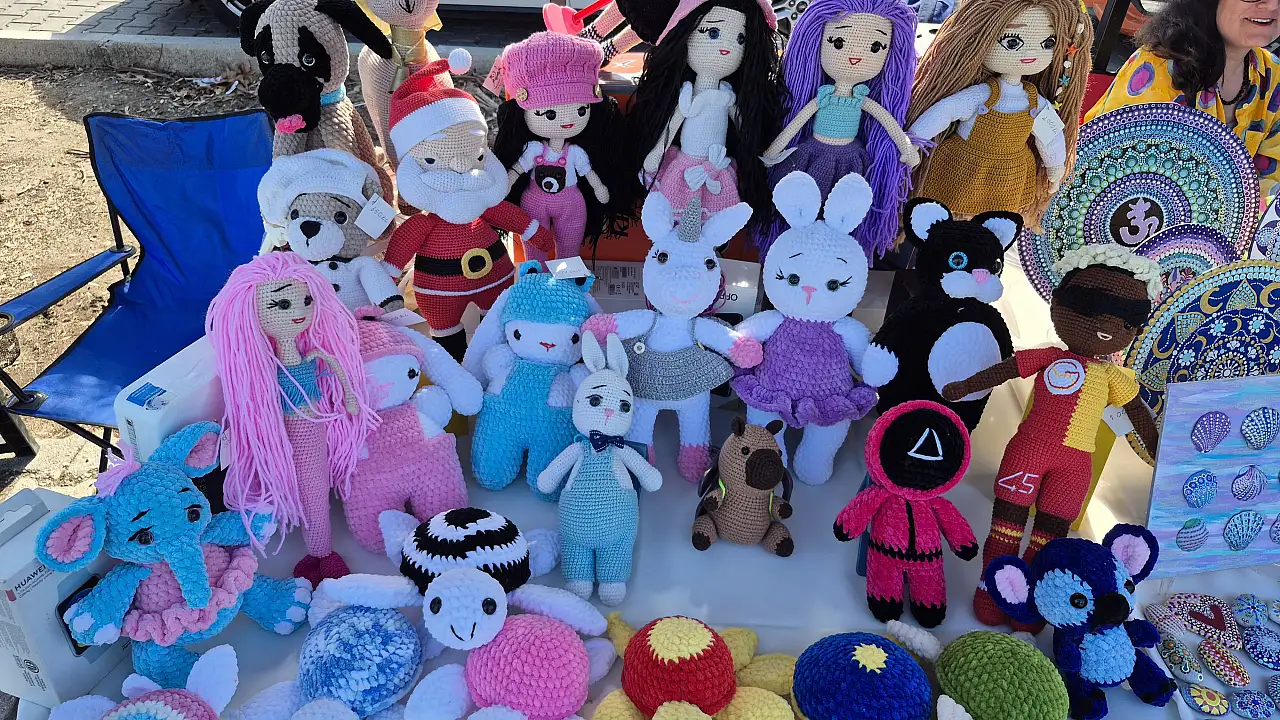 Yan tezgâhı diğer bir üreticiyle paylaştıklarını, burada amigurumi olarak bilinen örgü bebeklerin de yer aldığını ifade eden Akay, “Amigurumi sanatı denilen örgü bebekler de var. Yan tezgahta satışa sunuluyor. Onlarda tamamen el emeği, göz nuru” ifadelerini kullandı.