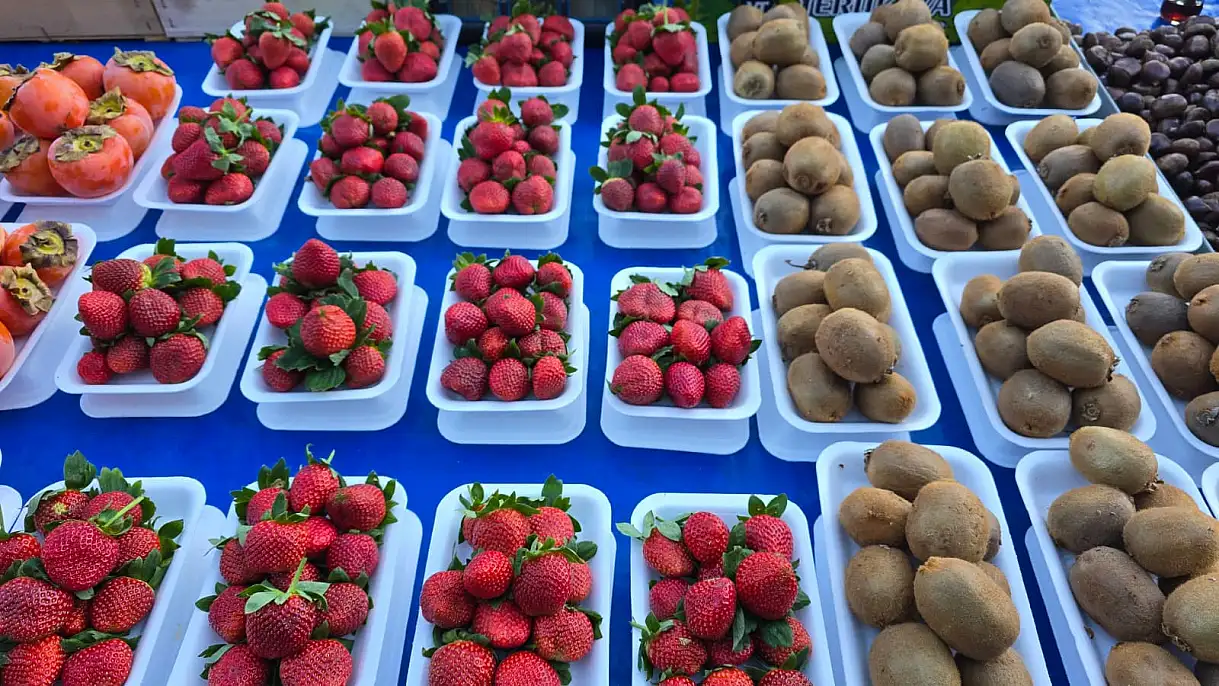 Fethiye'de yılbaşı öncesi kurulan son Patlangıç Pazarı'nda yılbaşı sofralarını süsleyen kivi, çilek, nar ve kestane tezgahlarda yerini alırken, vatandaşlar yeni yıla lezzetli bir başlangıç yapmanın hesabını yaptı.