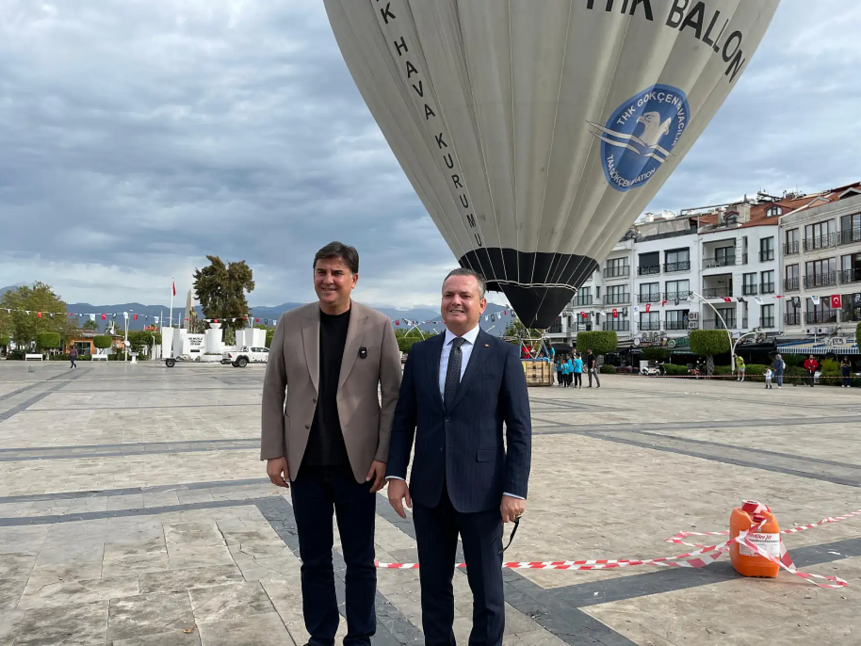 Fethiye Kaymakamı Fatih Akkaya, geleneksel olarak düzenlenen Fethiye 25. Hava Oyunları Festivali'nin ilk gününde Beşkaza Meydanı'nda, Türk Hava Kurumu'na ait sıcak hava balonuna binerek kısa bir uçuş gerçekleştirdi.