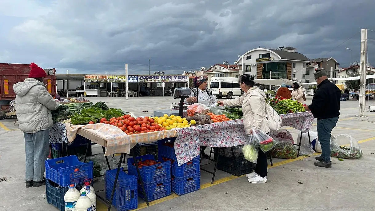 Fethiye'nin Taşyaka Mahallesi'nde Perşembe günleri kurulan semt pazarı, soğuk ve rüzgarlı havaya rağmen kuruldu. Pazarcı esnafı tezgahlarını açarak sebze ve meyvelerini satışa sundu.