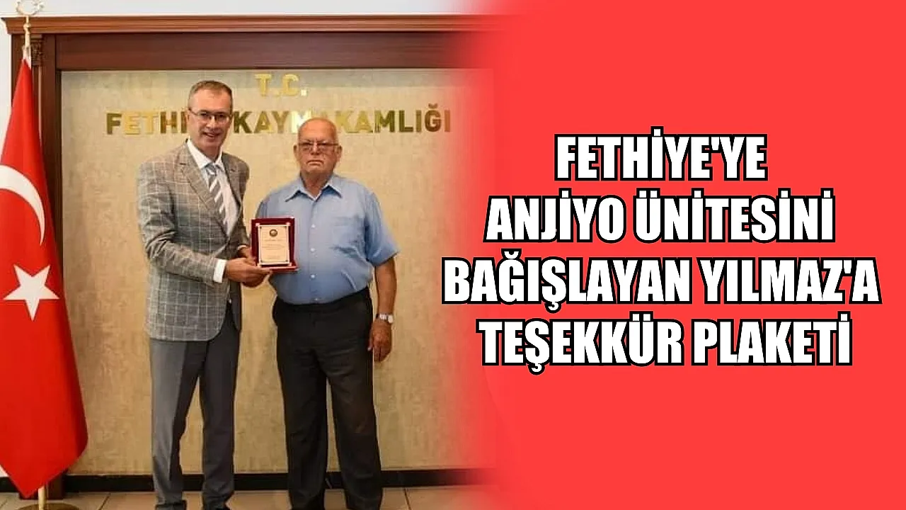 Muğla'nın Fethiye ilçesinde Anjiyo Ünitesini bağışlayarak ilçemize kazandıran hayırsever Hüseyin Yılmaz'a teşekkür plaketi takdim edildi.