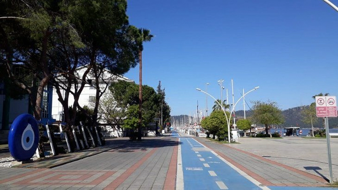 Fethiye'de Kovid-19 mücadele kapsamında sokağa çıkma yasağının başlamasının ardından sokak ve caddelerin boş kaldığı görüldü. Normal zamanlarda yoğunluk yaşanan Beşkaza Meydanı, yürüyüş ve bisiklet yolları, kordon boyu, Paspatur Carşısı, Şehit Fethibey Parkı, Çalış plajinda sessizlik hakim olduğu gözlendi.