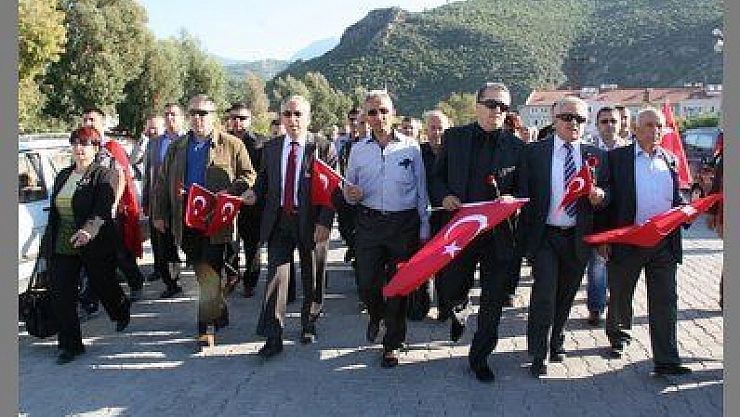 Hakkari’de 25 askerin şehit edilmesi Fethiye’de de çok sayıda vatandaşın katıldığı yürüyüş ile protesto edildi. Fethiye Ticaret ve Sanayi Odası’nın üyeleri için düzenlediği yürüyüşe sivil toplum kuruluşları başkan ve üyeleri ile bazı siyasi partilerin İlçe Başkanları da katıldı. Yürüyüşe Ölüdeniz İngiliz Yarenler Ekibi de katılırken İstiklal Marşına da eşlik eden İngilizlerden bazılarının gözyaşı döktüğü gözlendi. Hakkari’de PKK Terör örgütünün yaptığı eylemlerde 25 askerimizin şehit edilmesine tepki için Fethiye Ticaret ve Sanayi Odası Meclis komiteleri için yürüyüş düzenledi. Oda binası önünde başlayan yürüyüşe sivil toplum kuruluşları ve çok sayıda vatandaş ta katıldı. Oğlu Diyarbakır’da askerlik yapan Oya Gürdal isimli kadın on aylık torunu Denizcan Kocaoğlan ile bu yürüyüşe katılırken Salı pazarı meydanından geçilirken bir gurupta şehitler ölmez vatan bölünmez sloganları ile yürüyüşe katıldı. Vatan için ölmeye hazırı, Cumhuriyetin Bekçileriyiz, Hepimiz Mehmetçiğiz yazılı afişlerin taşındığı yürüyüş sırasında ellerinde Türk Bayrakları ve Kırmızı karanfillerle Fethiye Şehitler Anıtı önüne kadar devam eden yürüyüşte zaman zaman PKK’yı lanetleyen sloganlar atıldı. Fethiye Ticaret ve Sanayi Odası Başkanı Akif Arıcan, Meclis Başkanı Mustafa Büyükteke ve Ölüdeniz Belediye Başkanı Keramettin Yılmaz tarafından organize edildiği öğrenilen yürüyüş kırmızı karanfillerin Şehitler Anıtına bırakılması ile devam etti. Fethiye Muharip Gaziler ve Şehit Aileleri yardımlaşma ve Dayanışma Derneği Başkanı Namık Ünal Anıt önünde yaptığı konuşmada; bu milletin barış ve kardeşliği istediğin belirtip, “Terör olayının biran önce demokratik ve askeri tedbirlerle bitirilmesini istedi. Terörle müzakere değil, mücadele edilir” diyen dernek Başkanı Namık Ünal, “Teröristlerin kökünü kazımak için önce meclisteki kravatlı teröristlerin temizlenmesi lazım” dedi. Daha sonra saygı duruşunda bulunulup İstiklal Marşı gür bir sesle okundu. İNGİLİZ YARENLER İSTİKLAL MARŞI OKUYUP GÖZYAŞI DÖKTÜ Şehitler Anıtına kadar halkın içinde folklorik kıyafetleri ile yürüyen Ölüdeniz İngiliz Yarenler Ekibi, sık sık ellerindeki Türk Bayraklarını salladılar. Şehitler Anıtı önünde İstiklal Marşı’na eşlik eden İngilizlerden Shirley Vaughan, 25 şehidimiz için gözyaşlarını tutamadı. Shirley Vaughan, Stuart James, Margaret Mcaltoon gazetecilerin sorusu üzerine; “25 şehit haberi bizleri de çok üzdü. Türkiye’de yaşıyoruz. Terörü lanetliyoruz. Annelerin acılarına katılıyoruz. Bunun için buradayız” diye konuştular.