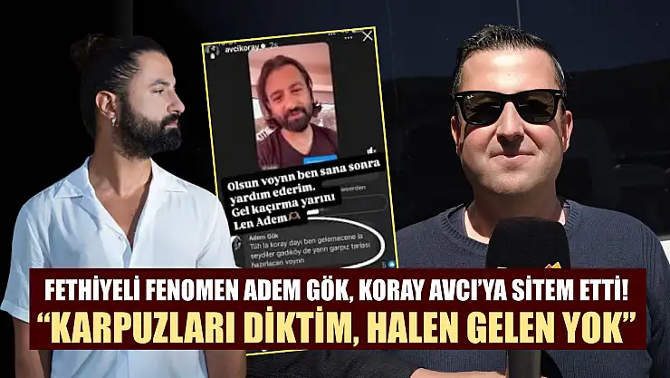 Muğla'nın Fethiye ilçesinde sosyal medyada yaptığı yorumlar ile tanınan Fethiyeli fenomen Adem Gök, ünlü sanatçı Koray Avcı'ya esprili bir sitemde bulundu. Gök, Avcı'nın kendisine verdiği 'konsere gel, tarlada yardım edeceğim' sözünü hatırlatarak, 'Karpuzları diktik, hâlâ bekliyorum' dedi.