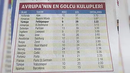 Avrupa'nın en golcü kulüpleri arasında ilk üçe giren Lacivert, beyazlılar maç başına 3.22 gol istatistiğine ulaşarak, Avrupa'nın büyük kulüplerini geride bıraktı. İlk sırada 37 golle bulunan Hollanda Ajax kulübünü 33 golle Almanya Bayern Münih kulübü takip ederken, 3. Sırada 29 gol ile Türkiye kulübü Fethiyespor bulunuyor. Fethiyespor yakaladığı büyük başarısını şampiyonluk ile taçlandırmak istiyor.