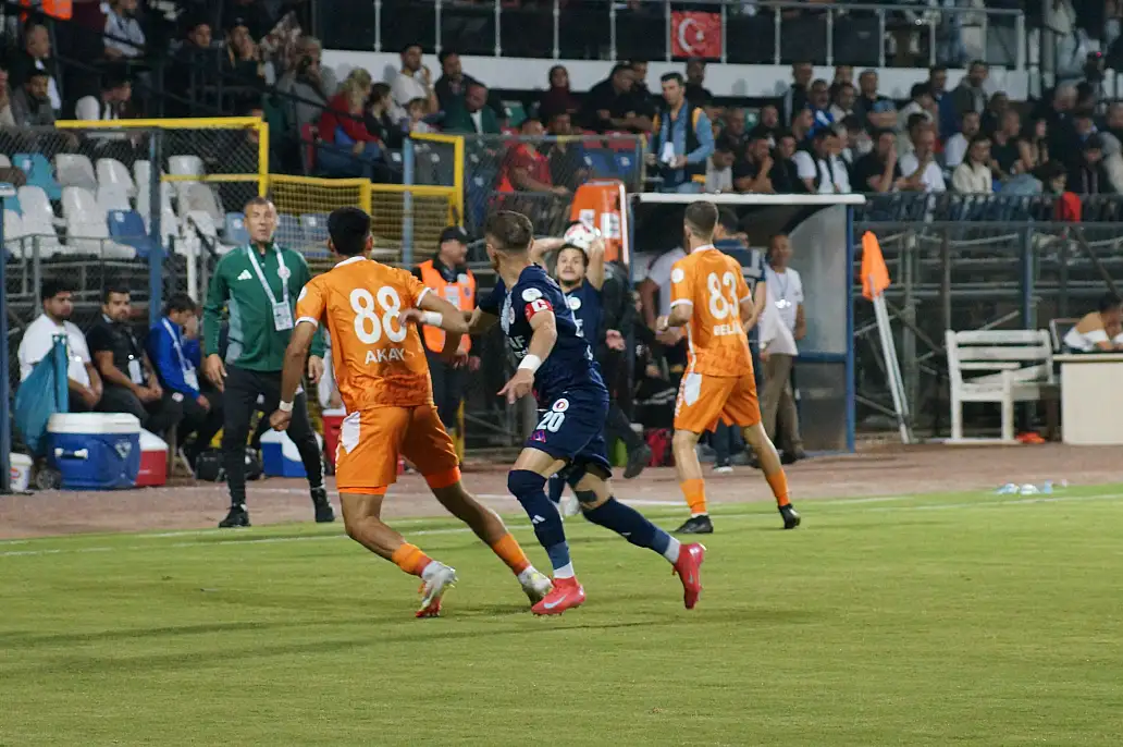 39.dakikada Adanaspor ilk tehlikeli atağında ceza sahası çizgisinden Burhan ile şansını denedi top üstten aut.