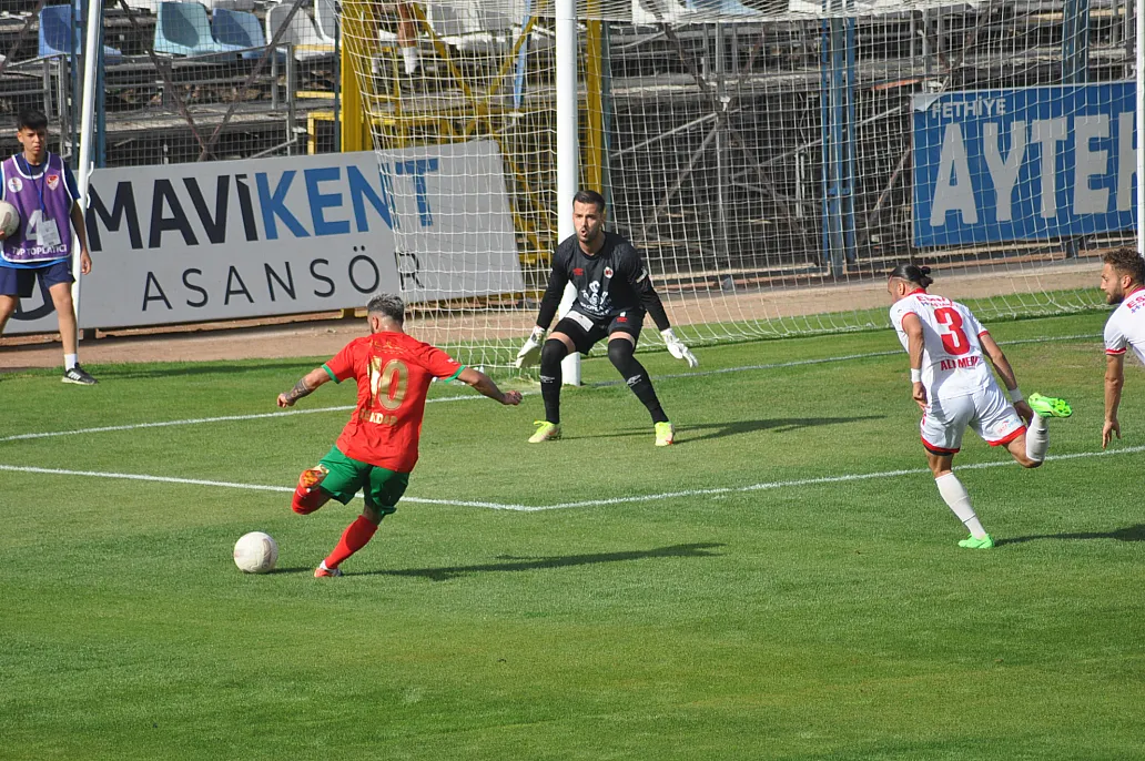 12. dakikada Selçuk’un pasını iyi takip eden Nurettin, ceza sahası çizgisi üzerinde yerden sert vurdu. Top direğin dibinden dışarıya gitti.