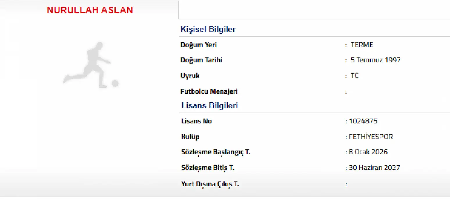 TFF 2. Lig Kırmızı Grup'ta mücadele eden Fethiyespor, sezonun ilk yarısında Yeni Mersin İdman Yurdu forması giyen kaleci Nurullah Aslan ile anlaşma sağladı.