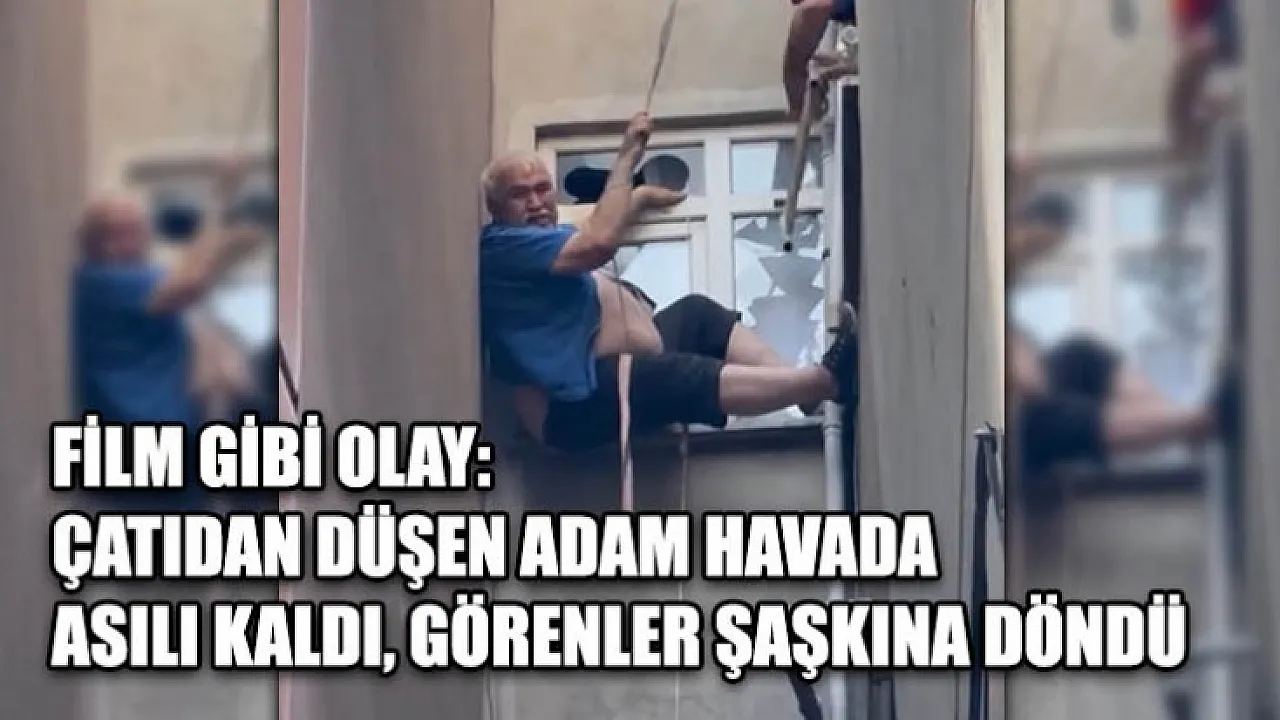Film Gibi Olay: Çatıdan Düşen Adam Havada Asılı Kaldı, Görenler Şaşkına Döndü
