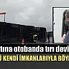 Bursa İstanbul otobanında fırtına viyadükten geçen bir tırı devirdi. Tır sürücüsü kazayı hafif yaralı olarak atlattı. Diğer sürücülerin yardımına koştuğu tır sürücüsünün devrilen aracının kabininden çıkma anı kameraya yansıdı.