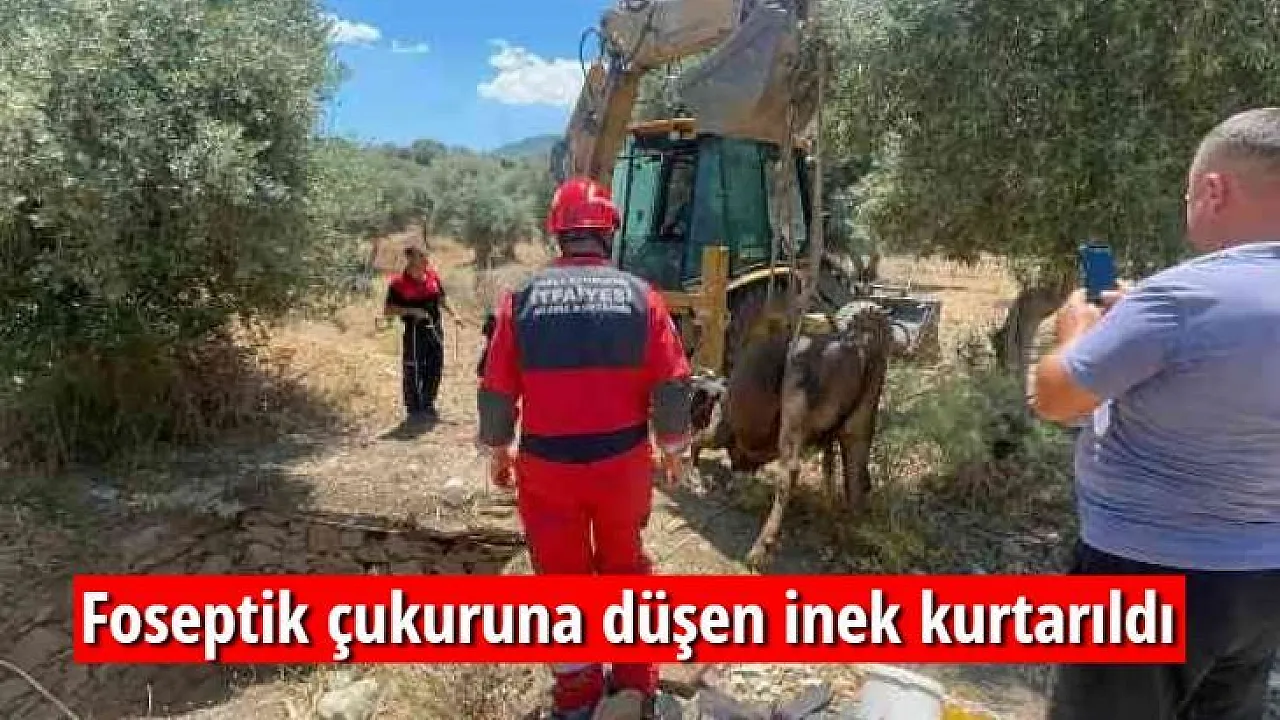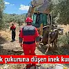 Olay yerine Muğla Büyükşehir Belediyesi Milas itfaiye grup amirliği ekipleri sevk edildi. İtfaiye ekipleri ip yardımı ile çukura düşen ineği kurtardı.