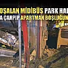 Freni boşalan midibüs park halindeki araçlara çarpıp apartman boşluğuna düştü
