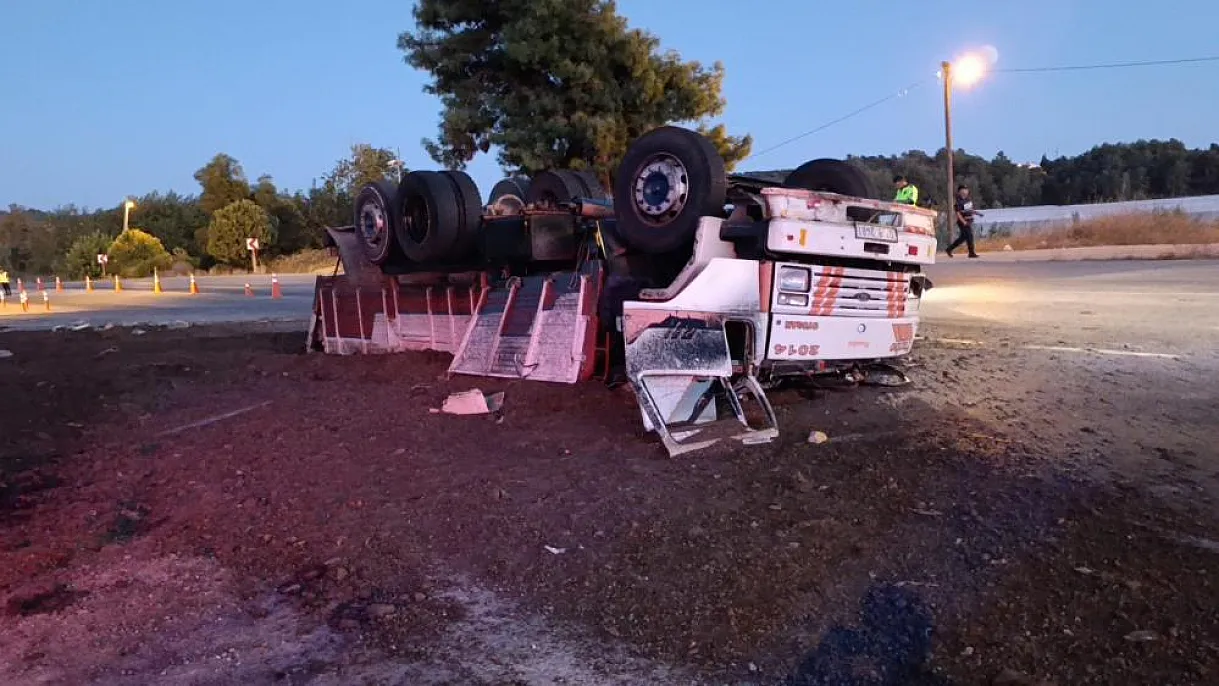 Freni patlayan gübre yüklü kamyon Jandarma ve Polisin ortak uygulama noktasına dalarak devrildi. Yol Kontrol Noktasında görevli Jandarma ve Polis ekiplerinin kamyonu erken fark etmeleri sayesinde facianın eşiğinden dönüldü.