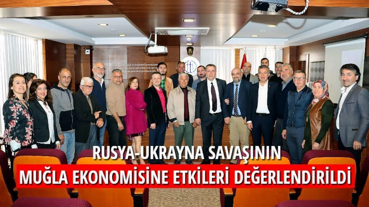 Fethiye Ticaret ve Sanayi Odası Meslek Komiteleri Müşterek Toplantısı'nda, Rusya-Ukrayna savaşının Muğla ekonomisine etkileri değerlendirildi. Muğla Sıtkı Koçman Üniversitesi Öğretim Üyesi, Muğla Odaları ve Borsa Akademik Danışmanı Doçent Doktor Serkan Dirlik, toplantıda yaptığı sunumla savaşın Muğla ekonomisine ve 2022 yılı turizm sezonuna muhtemel etkilerini rakamlarla anlattı.