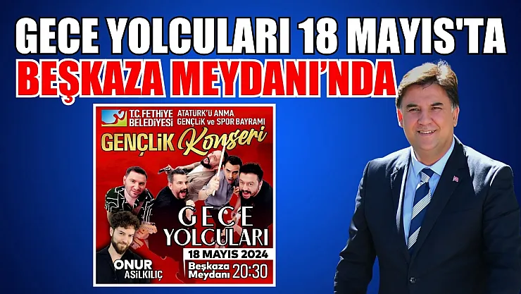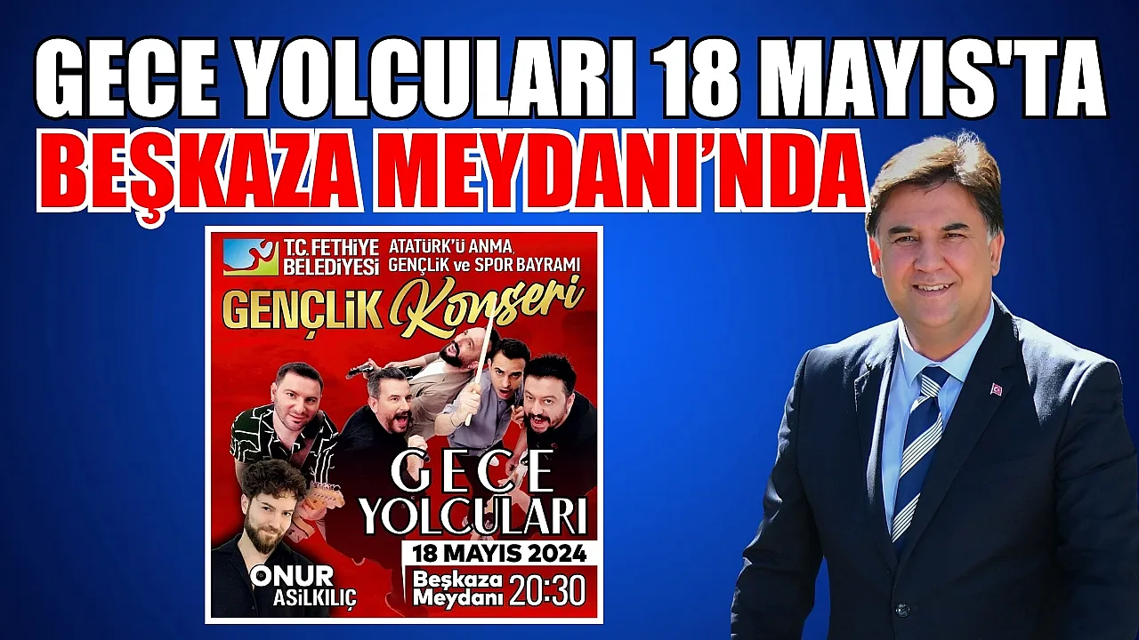 Fethiye Belediyesi her sene olduğu gibi bu yıl da; 19 Mayıs Atatürk’ü Anma, Gençlik ve Spor Bayramı’na özel gençlik konserleri düzenliyor. Bu çerçevede; pop-rock grubu Gece Yolcuları ve Onur Asilkılıç, Beşkaza Meydanı’nda gençlerle buluşacak.