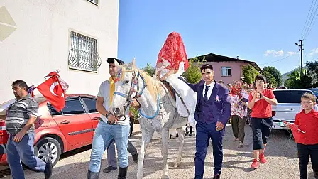 Muğla'nın Fethiye ilçesinde bir damat, gelin alma etkinliğini gelini ata bindirerek gerçekleştirdi.