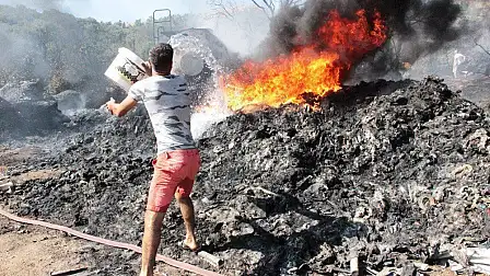 Muğla'nın Bodrum ilçesinde bulunan geri dönüşüm merkezinde yangın çıktı. Tesiste çıkan yangında oluşan dumanlar kilometrelerce öteden görüldü.