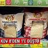 Gıda maddelerinde KDV oranında toptan perakende ayrımı kalkmış, olup oran hepsinde %1 olacak. İndirim pirinç, bulgur, nohut gibi tüm bakliyat ürünleri, su, çay, şeker, tuz, sıvı ve katı yağlar, pasta,makarna, kırmızı et, beyaz et, balık, süt, yoğurt, peynir, zeytin, yumurta, patates, soğan, biber, domates, salatalık gibi sebze ürünleri, meyveler, konserveler, turşu, salça, reçel gibi gıda maddelerinde uygulandı.