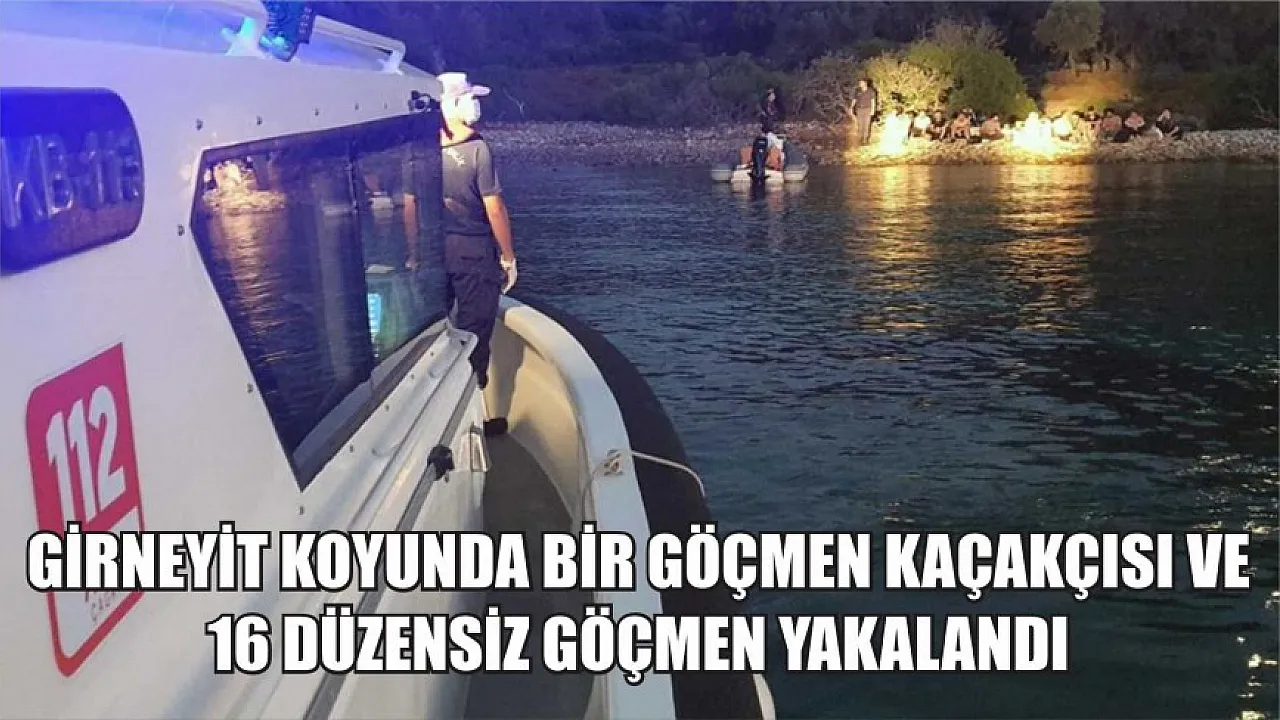 Girneyit koyunda bir göçmen kaçakçısı ve 16 düzensiz göçmen yakalandı