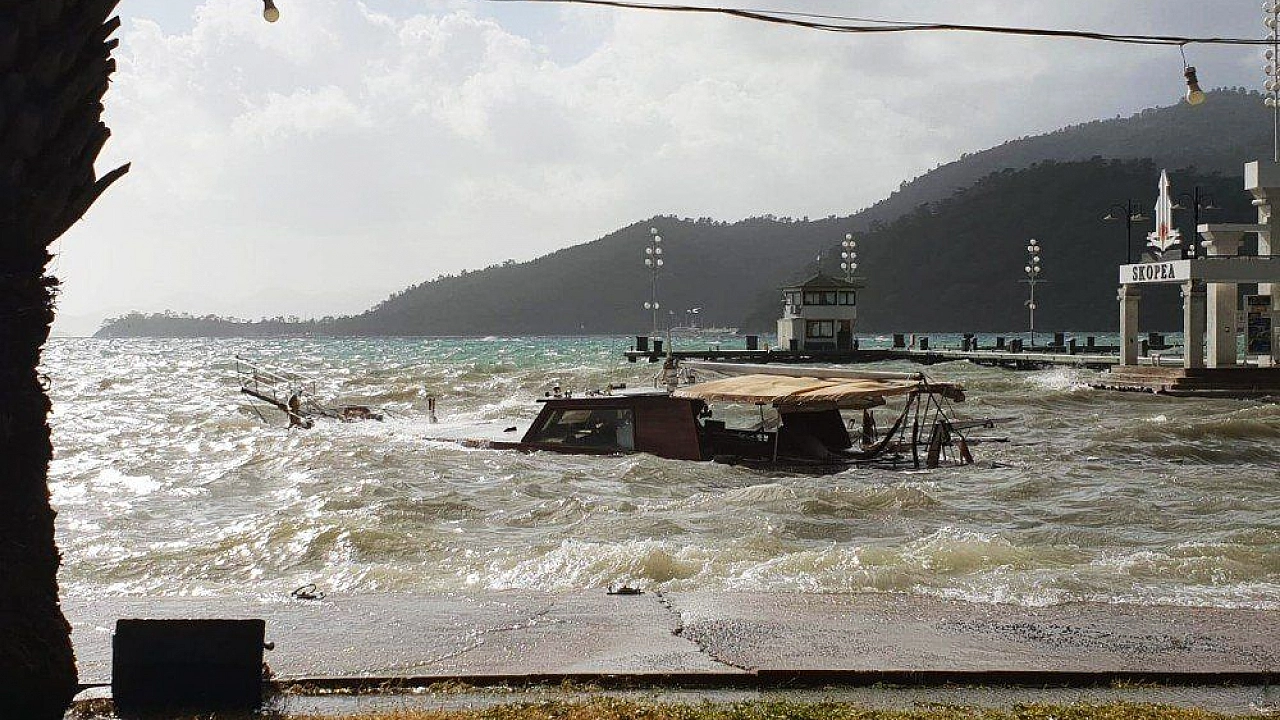 Muğla genelinde sabah saatlerinde başlayan yağış ve fırtına, kıyı kesimlerde hasara yol açtı. Muğla’nın Köyceğiz ilçesinde Köyceğiz Gölü taşarken, Fethiye’nin Göcek Mahallesi’nde de tur teknesi battı. Göcek limanında demirli bulunan 12 metre uzunluğundaki tur teknesi öğle saatlerinde başlayan fırtına ve yağış sonrası dev dalgaların kıyıyı dövmesi sonucu daha fazla fırtınaya dayanamadı ve deniz üstünde dalgaların hışmına uğradı. 12 metre uzunluğundaki tur teknesi bir süre sonra battı.