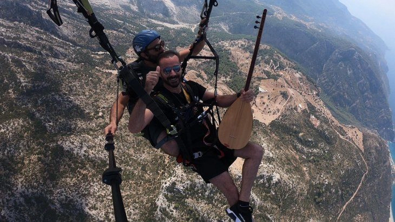 Fethiye’ye tatile gelen Çukur dizisinin müziklerini gerçekleştiren sanatçı Seyfi Yerlikaya Babadağ’ın 1700 metrelik pistinden Ölüdenize yamaç paraşütü ile tandem (ikili) uçuş gerçekleştirdi. Sanatçı Yerlikaya fly infinity şirketinden tecrübeli pilot Selçuk Fedakar Türk ile uçarken sazı ile birlikte uçtu. Gökyüzünde iyice havalanan ikili yaklaşık 2 bin metrede sazını eline alıp muhteşem ölüdeniz manzarasında türküler okudu. Zaman Zaman etkili olan rüzgara rağmen Yerlikaya saz çalıp “Ayrılık Hasreti ve Elfida” türkülerini seslendirdi. Yaklaşık 25 dakika boyunca gökyüzünde kalan sanatçı Yerlikaya Ölüdeniz Belceğiz plajına rahat şekilde iniş gerçekleştirdi. İnişte kısa bir konuşma yapan Yerlikaya, “ Havada bana sazda çaldırdınız ya müthiş güzel oldu. Ölüdenizin muhteşem doğasında yamaç paraşütünde bağlama çalıp türkü söylemek harikaydı. Bu anıyı hiç unutmayacağım” dedi.