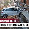 Kontrolden çıkan otomobil istinat duvarı ile inşaat halindeki binanın boşluğunda asılı kaldı. Otomobil içerisinde bulunan 4 kişi itfaiye ekiplerince kurtarıldı.