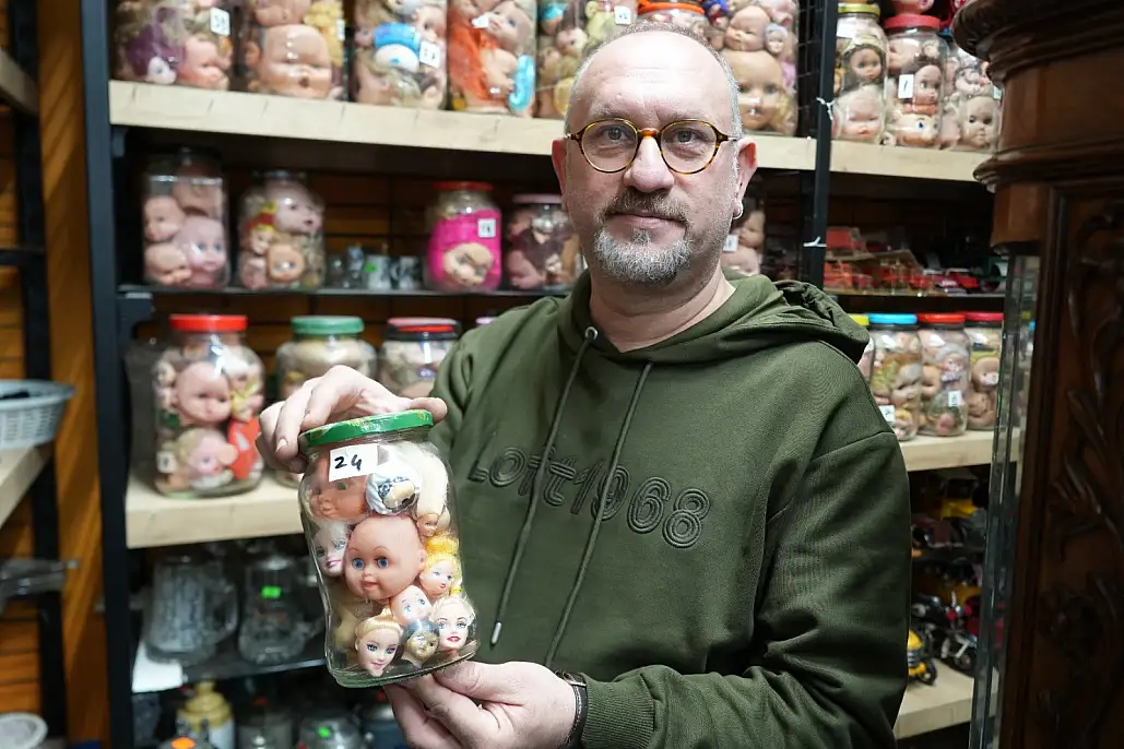 Antika dükkanı işleten Hamdi Dinibütünoğlu, yalnız yaşayan bir koleksiyonerden satın aldığı ve görenleri hayrete düşüren 5 bin parçalık oyuncak bebek kafası koleksiyonunu sergiliyor. Kavanozlara ve akvaryumlara doldurulmuş binlerce kafa, kimileri için ürpertici bir görüntü oluştururken, koleksiyonun ardındaki hikaye ise dikkat çekiyor.