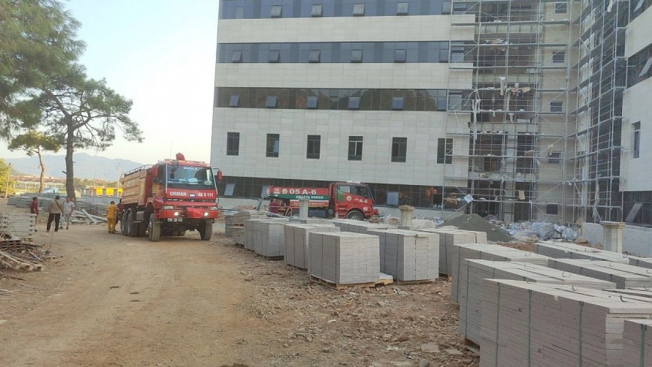 Muğla'nın Marmaris ilçesinde yapımı inşaat aşamasında olan devlet hastanesinin bodrum katında çıkan yangın korkuttu.