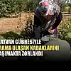 Bahçesindeki kabakları hasat ederken ikisinin 40 kilograma ulaştığını gören çiftçi, mutluluktan iri kabaklarıyla konuştu, onları elleriye okşayarak sevdi.