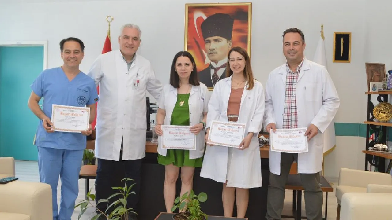 Muğla Eğitim ve Araştırma Hastanesi Başhekimi Prof. Dr. Turhan Togan, hastanenin başarılı hekimlerine yaptıkları bilimsel ve akademik çalışmalarla görevlerinde yükselme başarısını takdir ederek başarı belgelerini takdim etti.