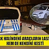 Hem park halindeki araçların lastiklerini hem de kendini kesti