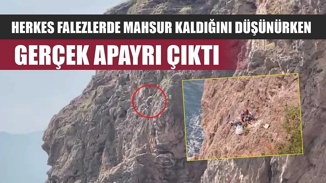 Antalya'da bir kişinin yaklaşık 30 metrelik sarp kayalıklardan oluşan falezlerin orta kısmında gören bir vatandaşlar şahsın mahsur kaldığını düşündü. Ancak gerçek görüldüğü gibi çıkmadı. Bulunduğu yerden kurtarmak için gelen ekiplere ot topladığını belirterek yardım istemedi.