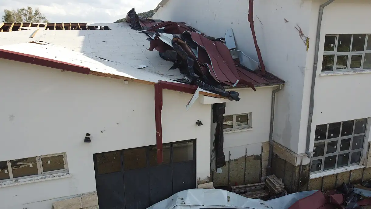 Hortum öğrenciler içerideyken okulu vurdu, çatıyı uçurdu, ağaçları devirdi