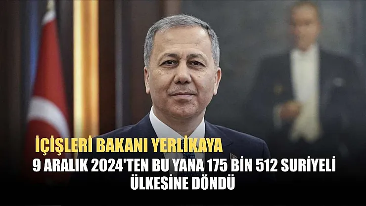 - İçişleri Bakanı Yerlikaya: 9 Aralık 2024'ten bu yana 175 bin 512 Suriyeli ülkesine döndü