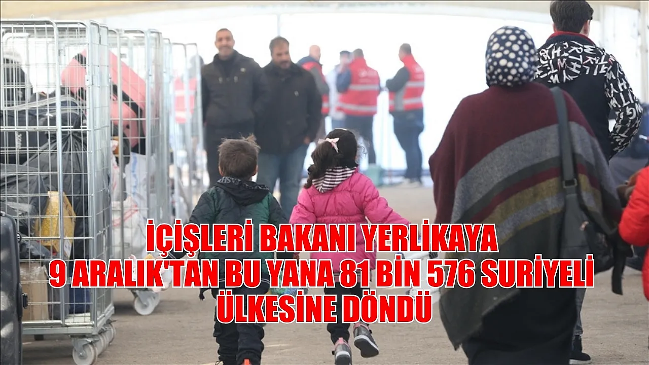 İçişleri Bakanı Ali Yerlikaya, 9 Aralık 2024'ten bu yana 81 bin 576 Suriyelinin gönüllü, güvenli, onurlu ve düzenli şekilde ülkesine döndüğünü bildirdi.