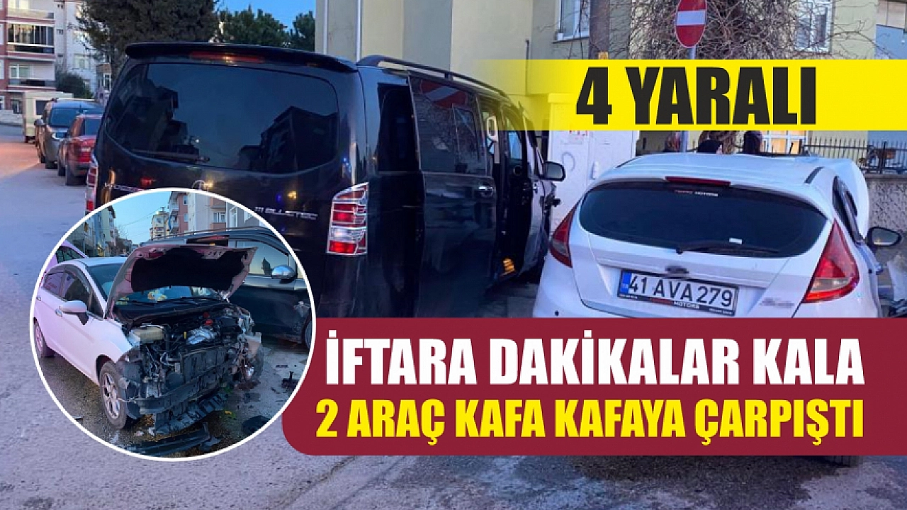 Kocaeli'nin Derince ilçesinde iftara dakikalar kala minibüs ile otomobilin kafa kafaya çarpışması neticesinde meydana gelen kazada 4 kişi yaralandı.