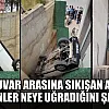 İki duvar arasına sıkışan aracı görenler neye uğradığını şaşırdı